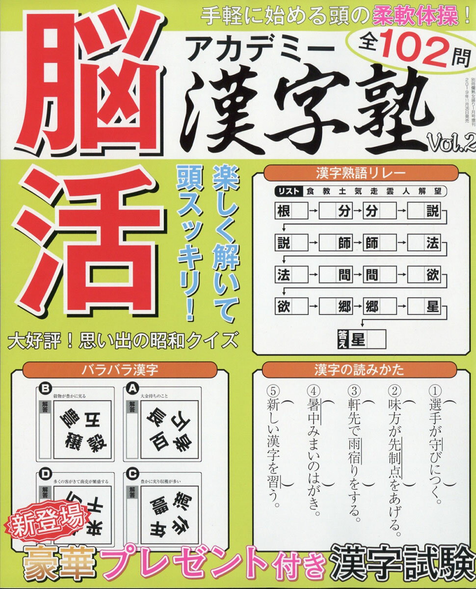 脳活アカデミー漢字塾 vol.2 2020年 01月号 [雑誌]