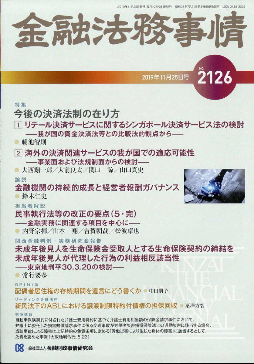 金融法務事情 2019年 11/25号 [雑誌]