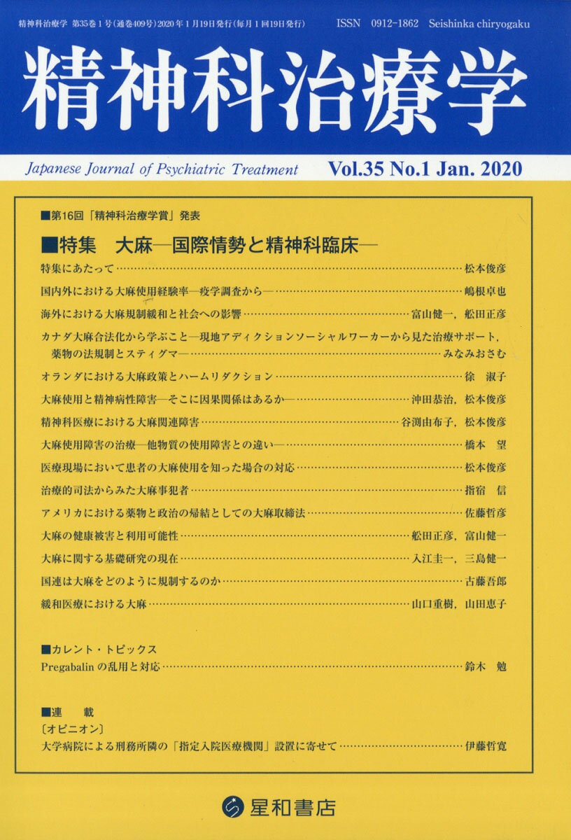 精神科治療学 35巻1号〈特集〉大麻ー国際情勢と精神科臨床ー[雑誌]