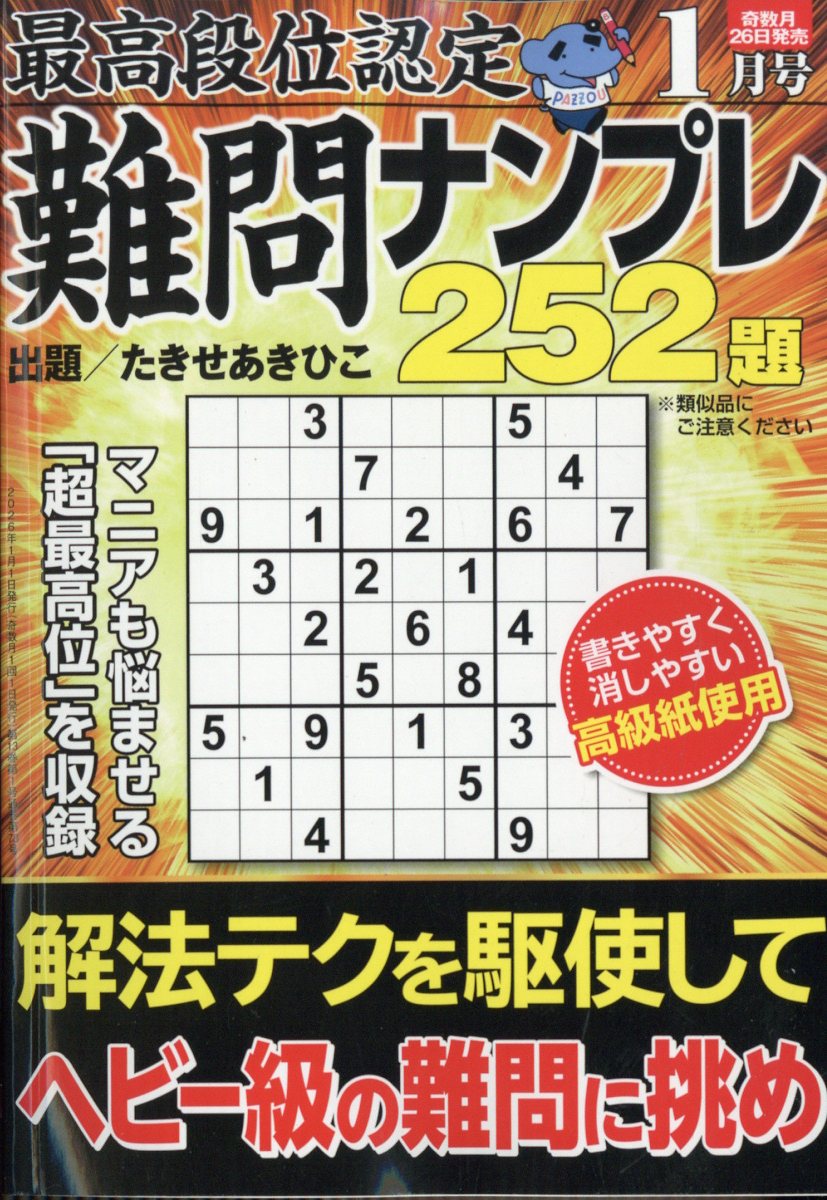 最高段位認定 難問ナンプレ252題 2026年 1月号 [雑誌]