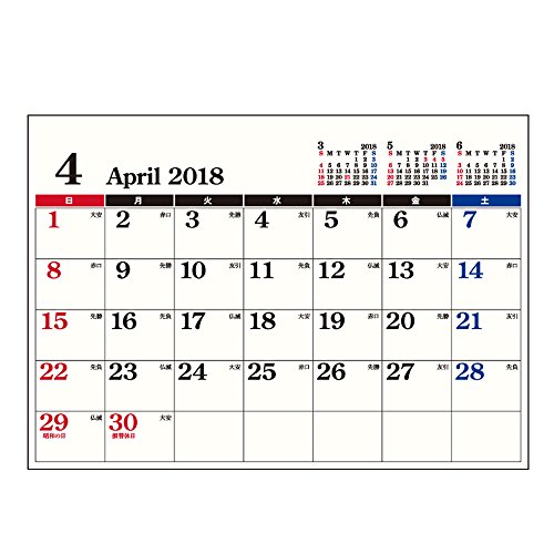 ユナイテッドビーズ カレンダー 2018年 4月始まり 壁掛け A3 Dタイプ CL184-D-A3