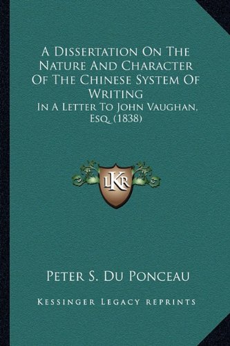 A Dissertation on the Nature and Character of the Chinese System of Writing, in a Letter to John Vaughan, Esq. (Classic Reprint) -