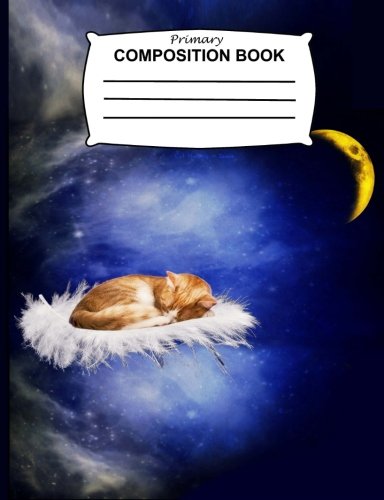 Primary Composition Book: Hand Writing Paper 108 Pg (7.44 X 9.69)Grades K-2, Cat Napping in Space Notebook, Cute Journal for Girls, Boys, Kids, School, Students & Teachers