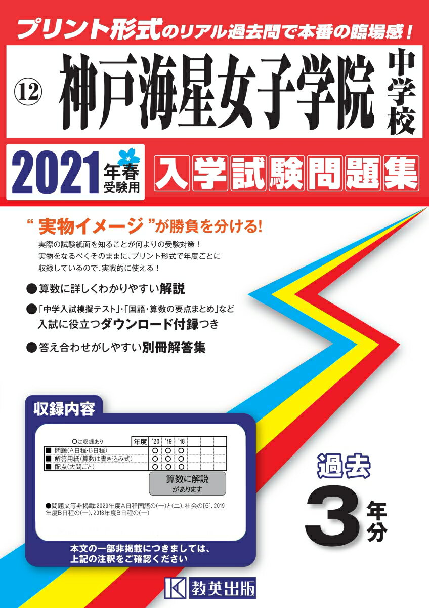 神戸海星女子学院中学校(2021年春受験用) (兵庫県国立・公立・私立中学校入学試験問題集)