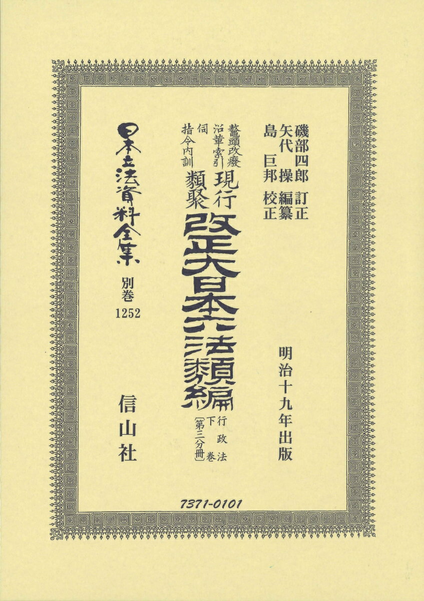 改正大日本六法類編 行政法下巻〔第三分冊〕 (日本立法資料全集別巻 1252)