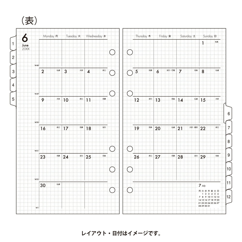 090月間ダイアリーカレンダー+方眼メモタイプインデックス付
