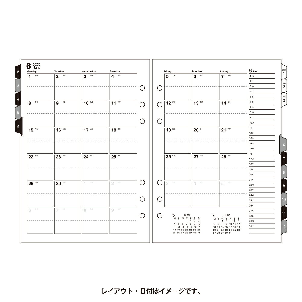 A5056月間ダイアリーカレンダータイプインデックス付