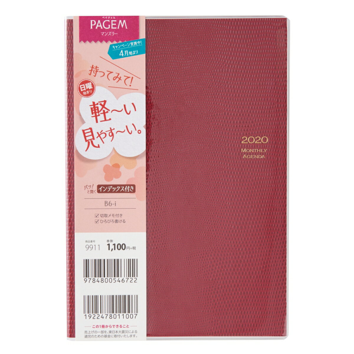 9911 ペイジェムマンスリー B6-i 日曜(クリムゾンレッド) 2020年4