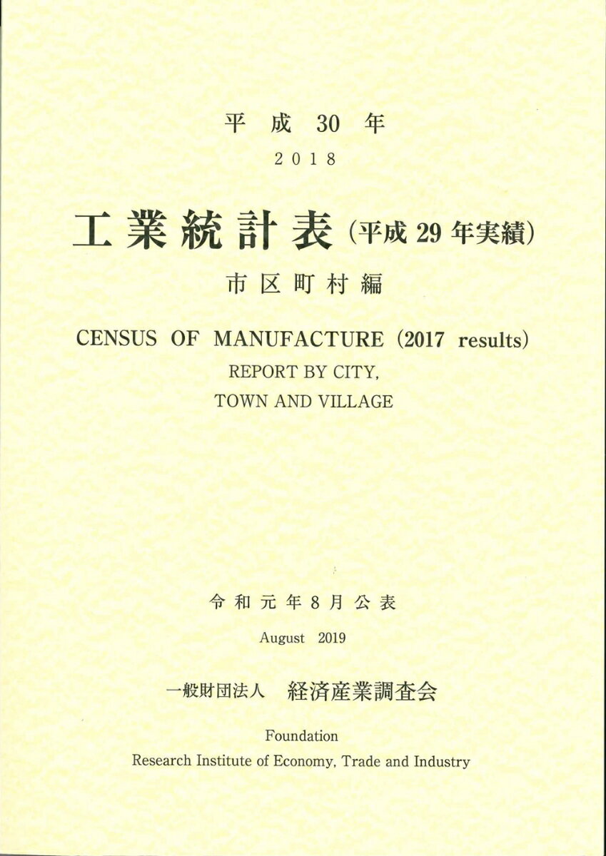 平成30年 工業統計表(平成29年実績) 市区町村編