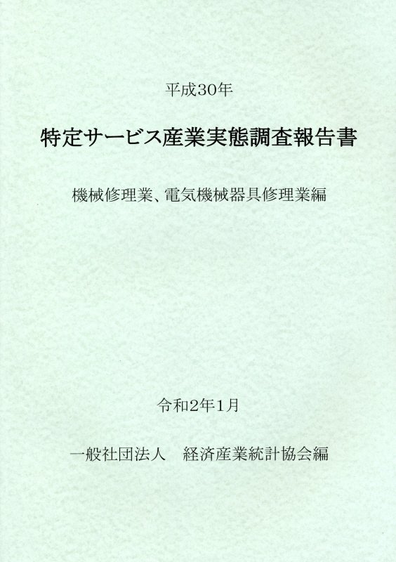 特定サービス産業実態調査報告書 機械修理業、電気機械器具修理業編(平成30年)
