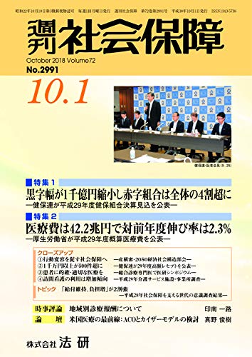 週刊社会保障2018年10月1日「黒字幅が1千億円縮小し赤字組合は全体の4割超に」―健保連が平成29年度健保組合決算見込を公表―