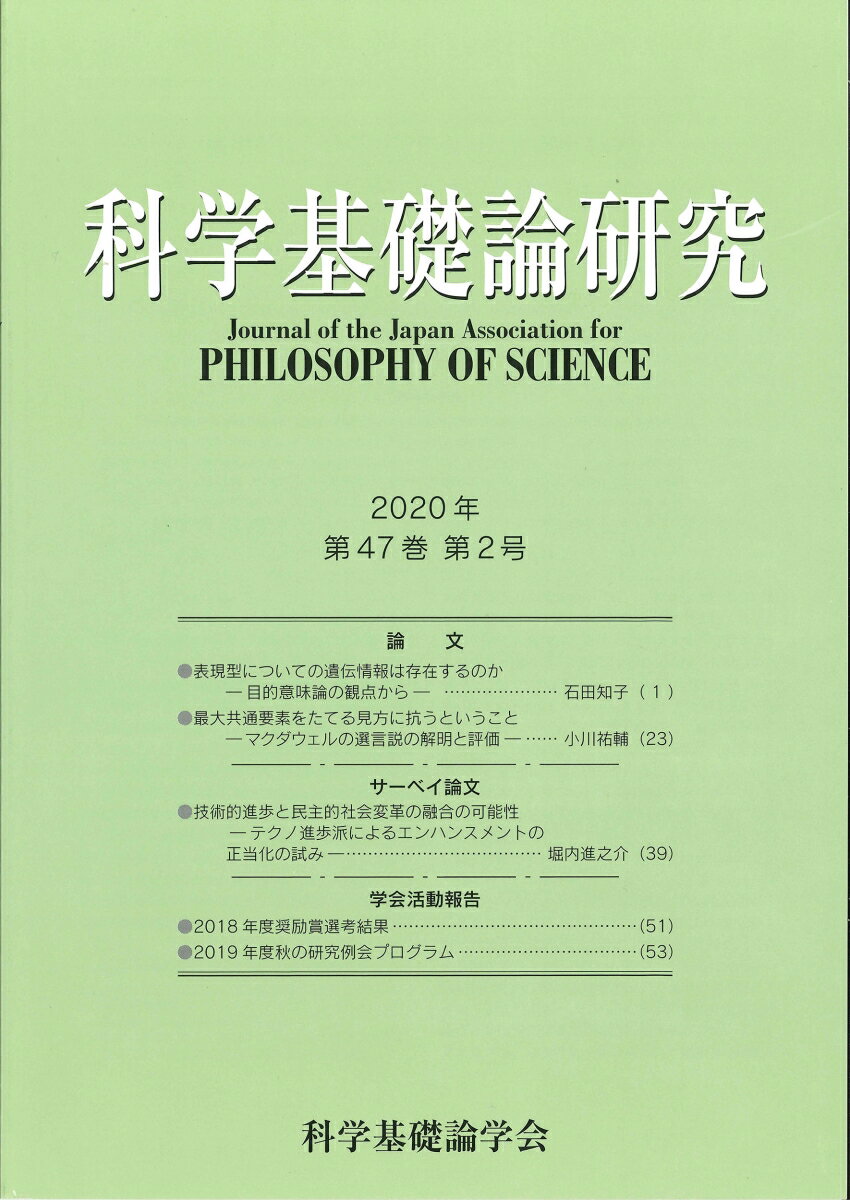 科学基礎論研究 2020年 第47巻 第2号